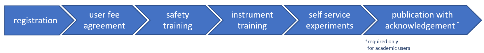 This type of access is available for academic as well as industrial users. Industrial users pay full hourly rates for the instrument usage; academic users pay the yearly flat-rate user fee.